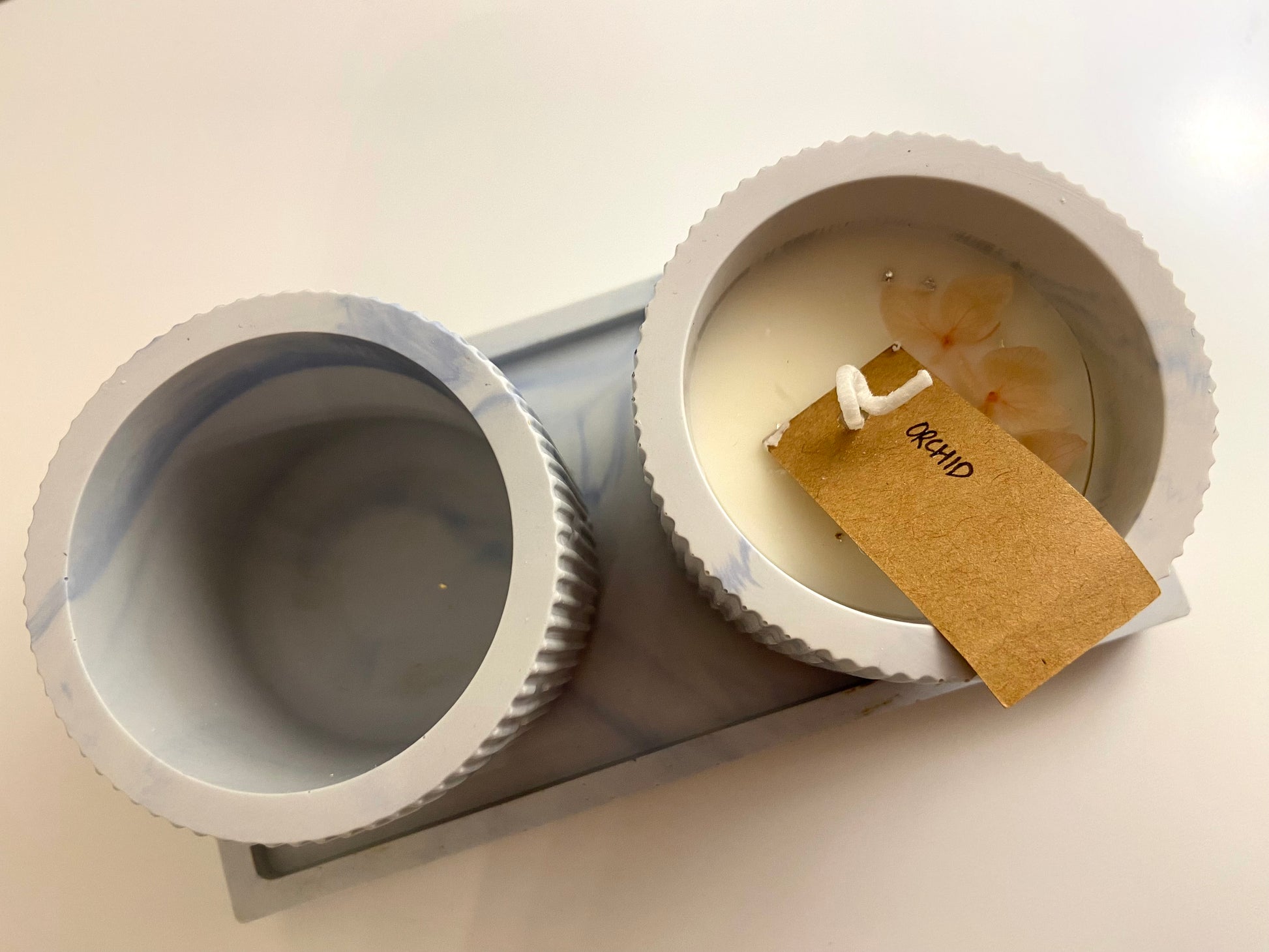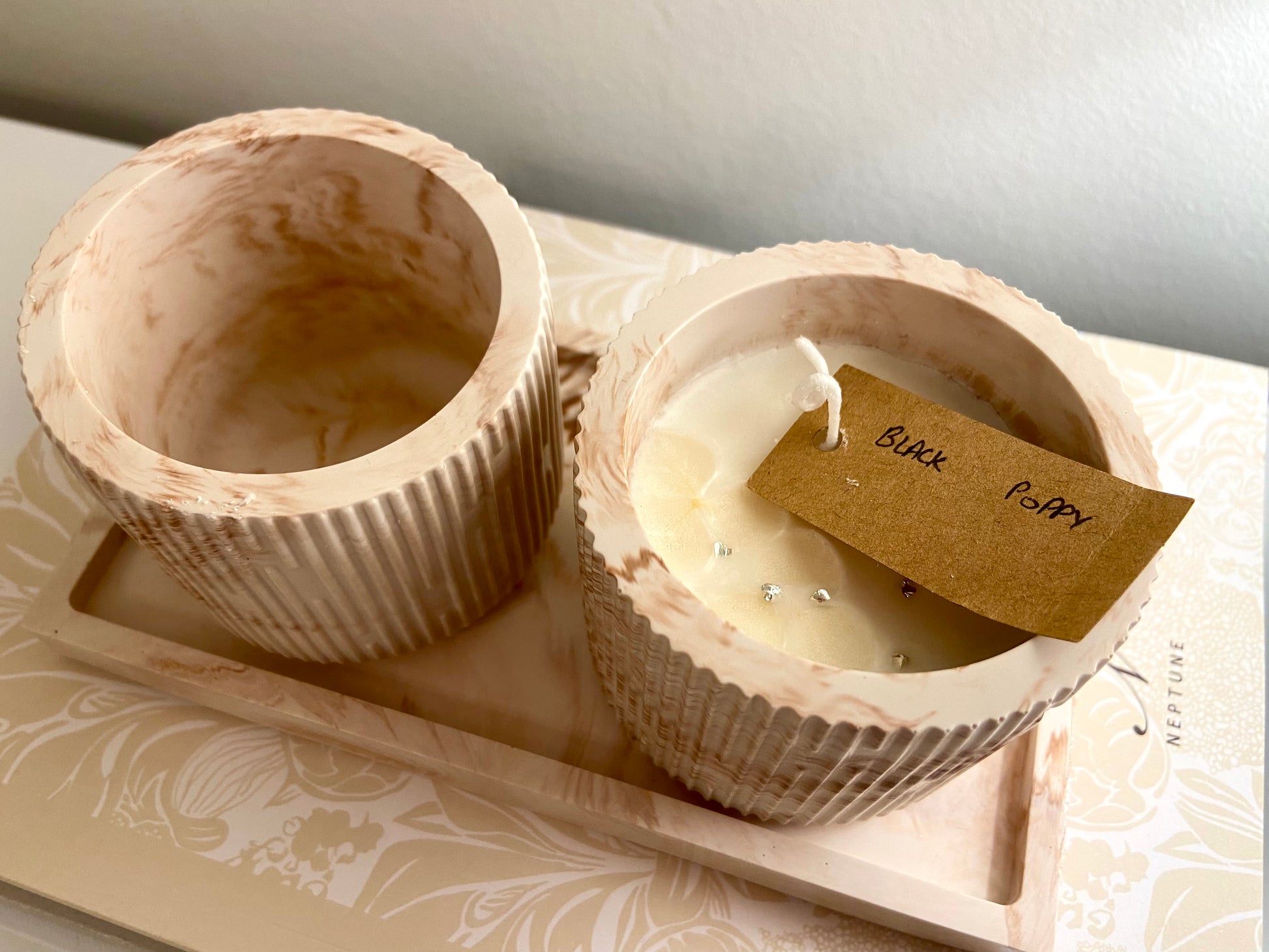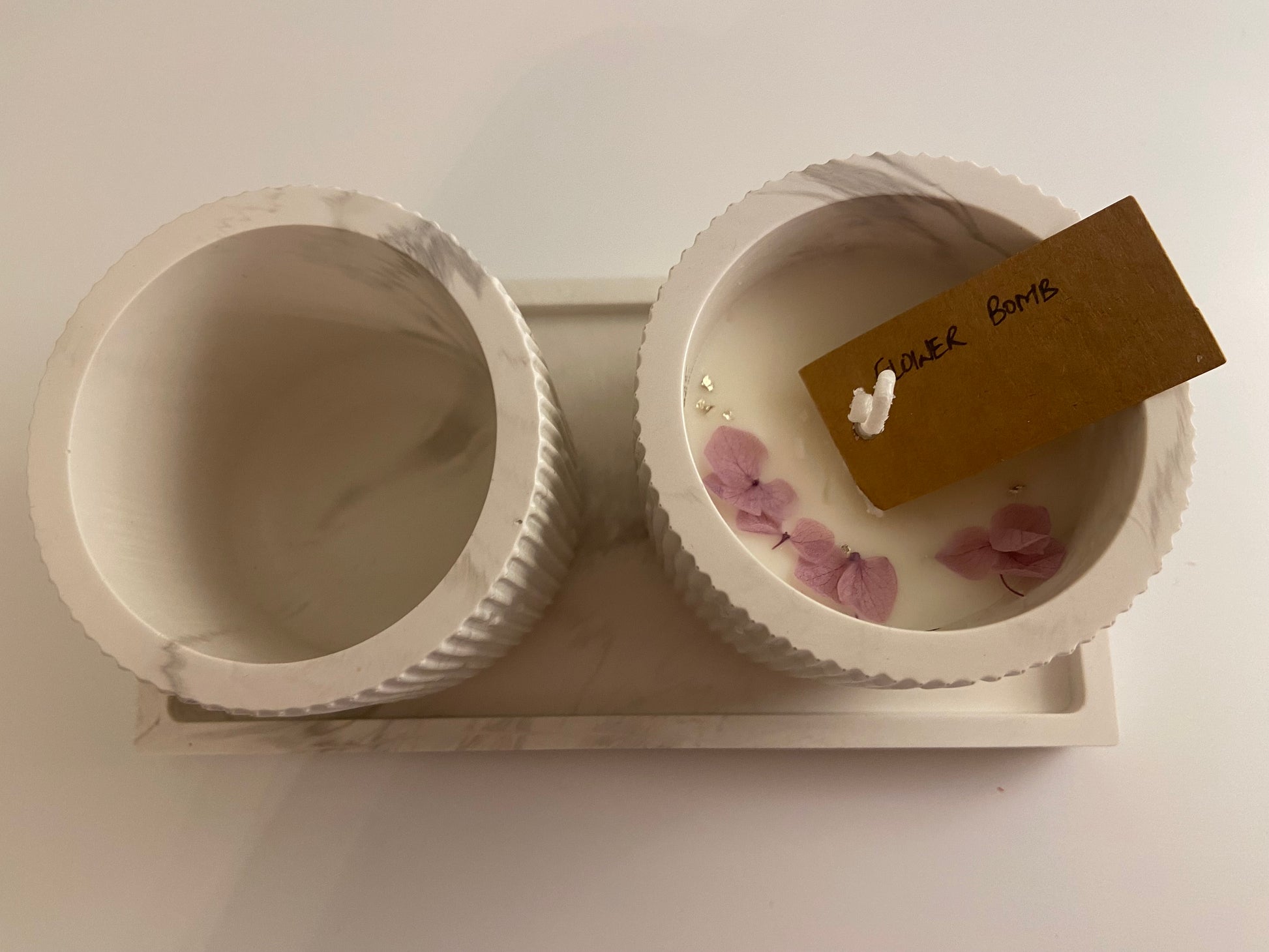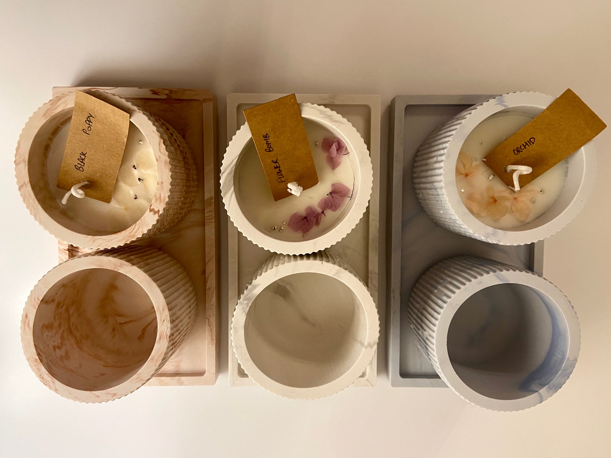 Ingredients: Jesmonite, Pigments, Natural Soy Wax, Premium Fragrance Oil, Dried Flowers.